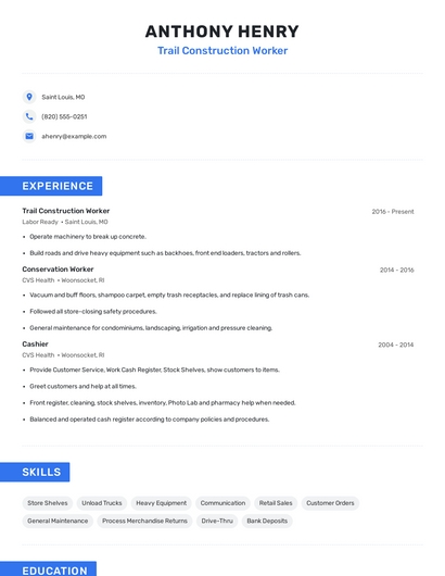 Choose from 10+ customizable trail construction worker resume templates