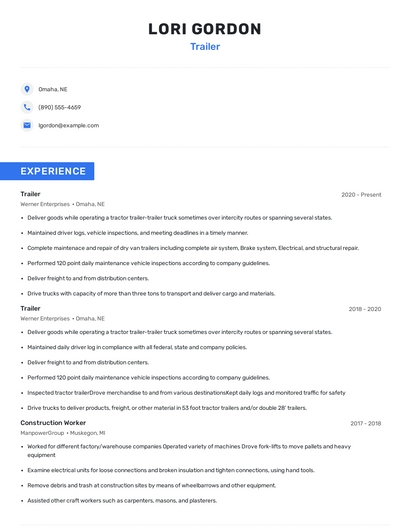 Build a professional trailer resume in minutes. Our AI resume writing assistant will guide you through every step of the process, and you can choose from 10+ resume templates to create your trailer resume.7. Tape Measure