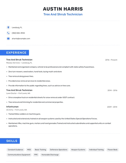 The most important skills for a tree and shrub technician resume and required skills for a tree and shrub technician to have include: