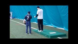 Tri-City Bomber's coach Luce working with the 13U pitchers