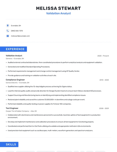 Choose from 10+ customizable validation analyst resume templates