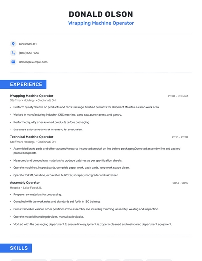 Wrapping machine operator skills for your resume and career